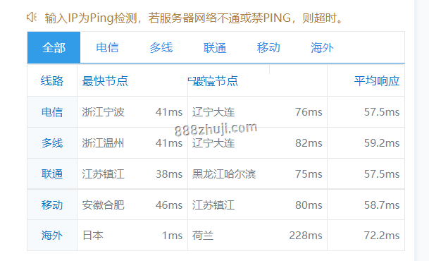 数据提供:ping.chinaz.com,这个ping值,堪比国内vps。
